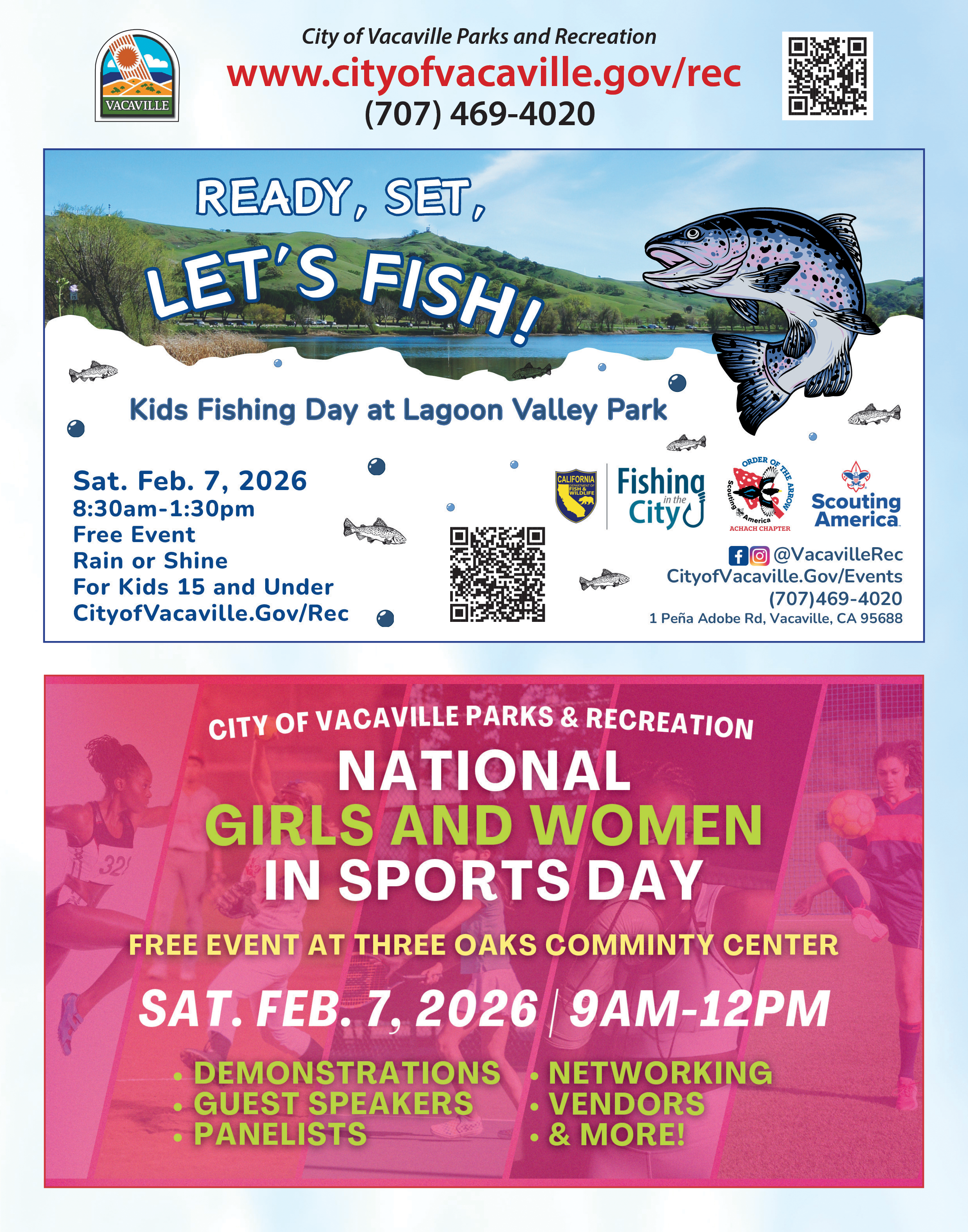 VACAVILLE – Vacaville offers a diverse selection of activities to make you and your family’s lives more active, healthy and fun. This includes the many local parks, performing arts theatre, state-of-the-art aquatic center, bike trails, and community recreational programs and events.