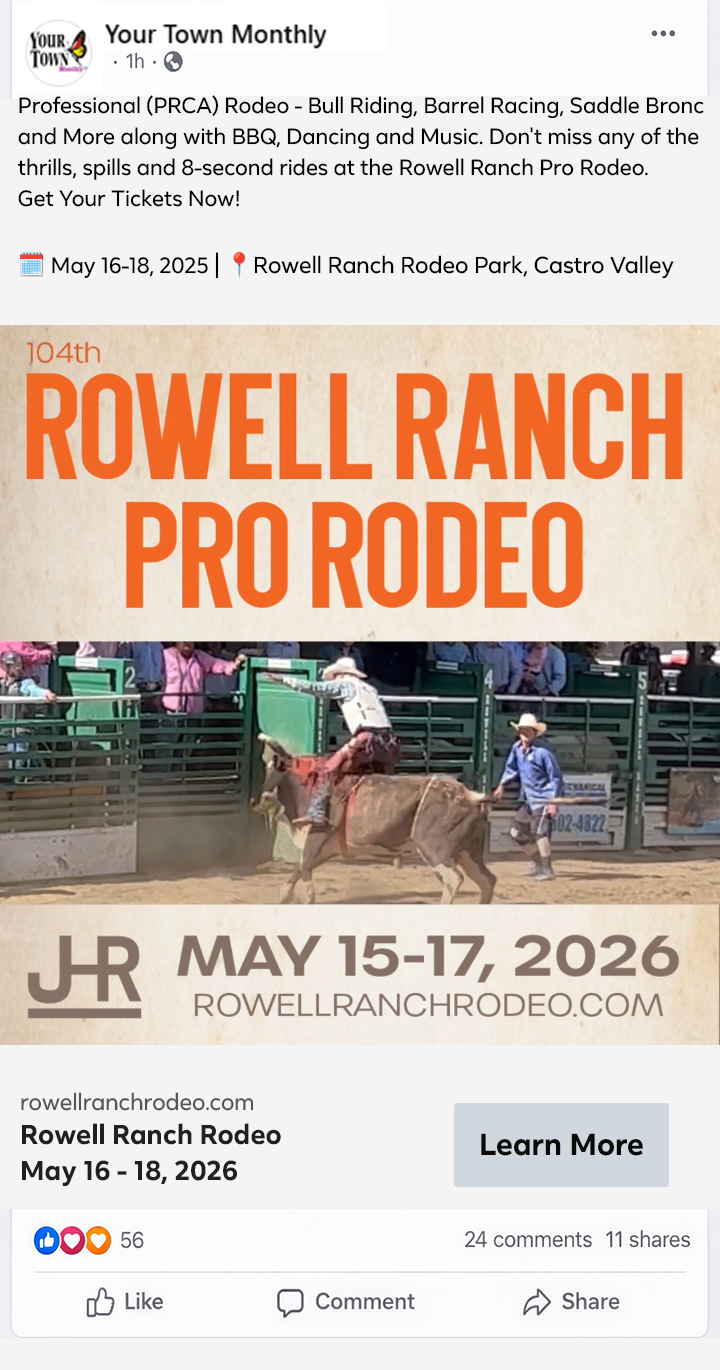 Click-through link: https://rowellranchrodeo.com/ Facebook post mockup: continue reading ›