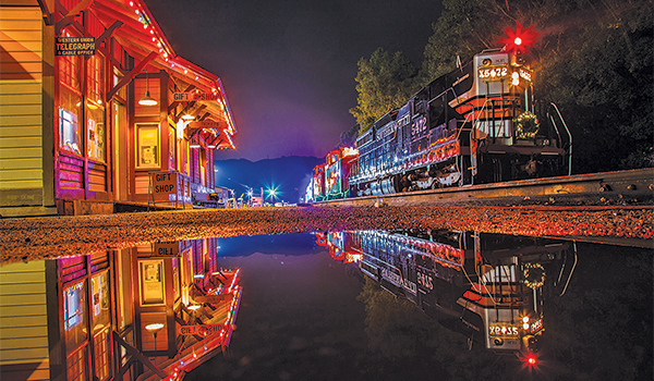 Come ride Niles Canyon Railway’s Train of Lights, departing twice a day on select days from November 21 – December 30, 2025. Photo © NCRY.org.