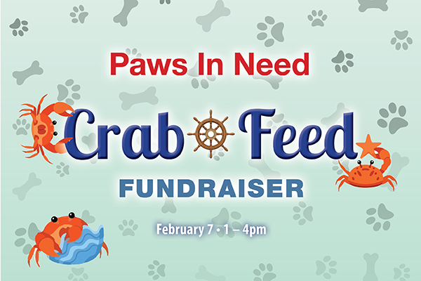 Paws In Need presents its annual Crab Feed Fundraiser on Saturday, February 7, 2026, with curbside pickup at 73 Rickenbacker Circle in Livermore.