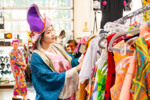 Shop vintage fashion, jewelry, and textiles at the Alameda County Fairgrounds in Pleasanton on October 25 & 26, with live music, food, drinks, and a spooky costume contest!