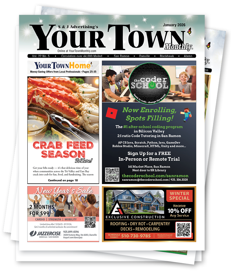 It’s easy to get a copy of Your Town Monthly®. In addition to the over 268,000 addresses in Northern California we mail to each month, you may also pick up a copy at your local community center or library, view the current issue on your computer or smart screen, and even subscribe to have Your Town Monthly® delivered directly to your inbox each month!